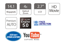Rechargeable lithium ion battery, lithium ion battery charger, AC power cord, USB cable, AV cable, strap, CD-ROM |