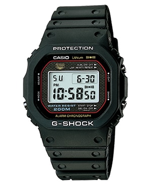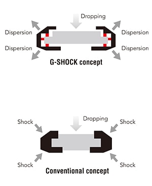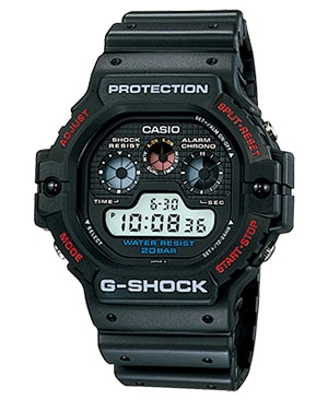 G-SHOCK development began in 1981. It was a time when watches could be easily damaged by shock and were considered to be sensitive instruments requiring careful handling. The concept for G-SHOCK arose when a Casio watch developer accidentally dropped a watch he had received from his parents after passing his high school entrance exam. Sadly, the watch broke. He made up his mind to create a new kind of watch that would not break even if dropped. After over 200 prototypes, a hollow watch case structure was finally devised that supported the core module at certain points. A covering of urethane was also formed around the entire case. This became the DW-5000C, the first G-SHOCK model, which was launched in 1983. The G-SHOCK name was coined from the development concept of a watch that can withstand a strong shock caused by gravity (free fall).