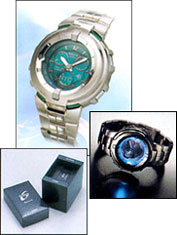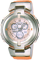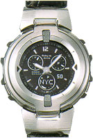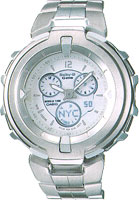 Functions include 40-city World Time, as well as dials that show the current hours in two different time