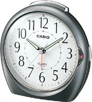 The TQ-379 features a light absorbing resin face for easy reading. An indicator on the front of the clock lets you see whether the alarm switch is on or off at a glance. |