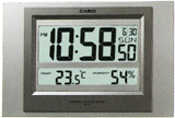 ID-16 Series: This wall/tabletop clock includes a thermometer and hygrometer. Any easy to read digital display with full auto calendar displays both date and time..