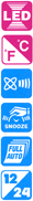 ID-15 Series: A woodgrain pattern case fits in perfectly with any interior decor. The face shows indoor temperature at a glance. Also includes a built-in tabletop stand and snooze feature.