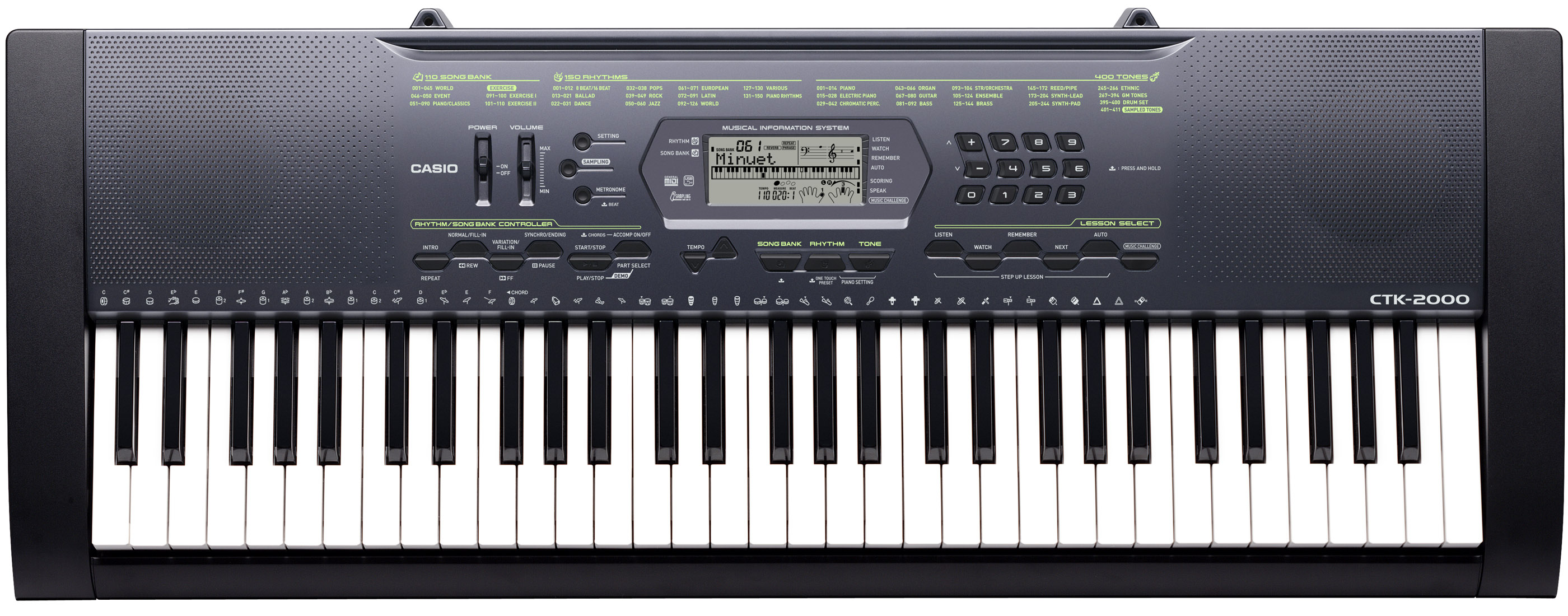 - 400 high-quality tones including stereo grand piano tones