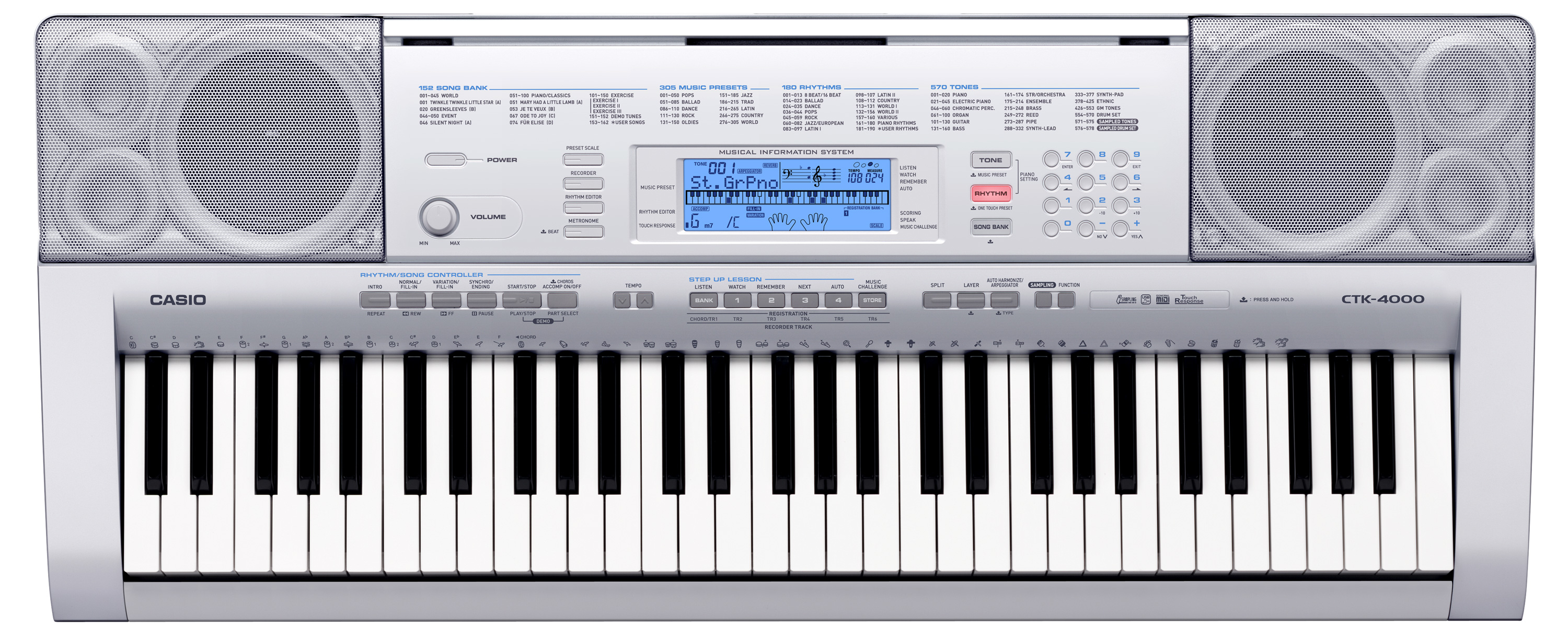 - 570 high-quality tones including stereo grand piano tones