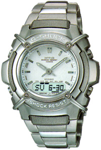 the G-ms. The hour markers of the MT-G are silver and blue,