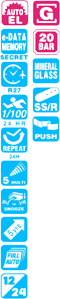 e-DATA MEMORY, while the Baby-G model has a Day Counter feature. |