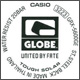 GLOBE UNITED BY FATEThis new model is the result of a tie up with Globe International, a global company that designs and markets apparel, footwear, and hand goods for the action sports and street fashion markets. The band and back cover of this model is marked with the text “GLOBE UNITED BY FAT”. The world “GLOBE” appears on display whenever the EL backlight is turned on.