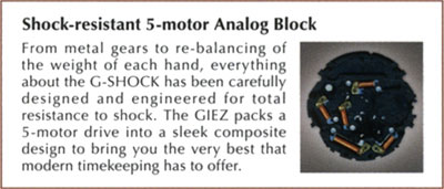These are the atest additions to the GIEZ lineup of casual, adult-oriented watches. These new models are the first to pack event-hand chronograph modules plus World Time with date indication into a G-SHOCK shock-resistant configuration.