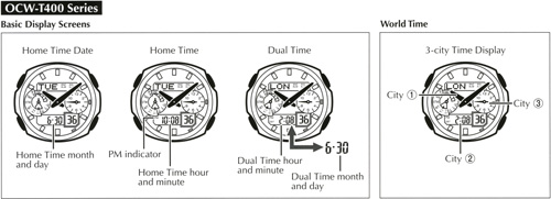 The OCW-T400 Series combination models with upper and lower LCD displays delver the best of simultaneously. The dial at 9 o’clock is designed to resemble an engine order telegraph pointer, and indicates the current mode, battery level, and signal reception level. This model is designed for both performance and ease of operation.