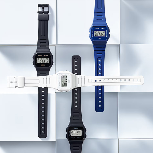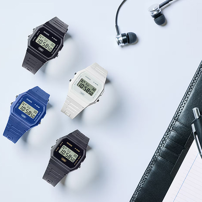 CASIO STANDARDThese lightweight and thin F-91W digital watches feature a simple face design with minimal functional indications. The band is made of bio-mass resin, which is expected to help reduce environmental impact. Functions such as date/day display, alarm, and stopwatch come in handy throughout the day.
