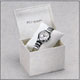 Rhinestones for hour markers are set into a mother of pearl face for a look of Iuxurious elegance. Though each watch is sold individually, the bands are designed to create distinct link between the men's and women's models.