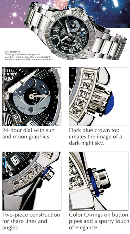 | Similar series Watch Series: | | | Sheen: Light yellow gold - SHE-4539BGM, SHE-4540GM Series (MAY 2024) | Sheen: SAPPHIRE CRYSTAL - SHE-4563D, SHE-4563GYL Series (FEB 2024) | Sheen: SAPPHIRE CRYSTAL - SHE-4562PGM, SHE-4562BM Series (JAN 2024) | Sheen: SAPPHIRE CRYSTAL - SHE-4554PGM, SHE-4554GYM Series (JUL 2023) | Sheen: SAPPHIRE CRYSTAL - SHE-4559D, SHE-4559GL Series (MAY 2023) | Sheen: SAPPHIRE CRYSTAL - SHE-4543D, SHE-4543BD Series (APR 2023) | Sheen: SAPPHIRE CRYSTAL - SHE-4543D, SHE-4543BD Series (JUL 2021) | Sheen: SAPPHIRE CRYSTAL - SHE-4541CGL, SHE-4541BL Series (NOV 2020) | Sheen: SAPPHIRE CRYSTAL - SHE-4539CGM, SHE-4539M Series (OCT 2020) | Sheen: SAPPHIRE CRYSTAL - SHE-4540CGM, SHE-4540M Series (OCT 2020) | Sheen: SAPPHIRE CRYSTAL - SHE-4538 Series (JUL 2020) | Sheen: SHE-4535YPG, SHE-4535YGL Series (JUN 2020) | Sheen: Mother of pearl dial - SHE-4060 Series (JUN 2020) | Sheen: SHE-3069PG Series (JUN 2020) | Sheen: Rose gold ion plated case - SHE-4534PGL Series (JAN 2020) | Sheen: SHE-4059PGM Series (JAN 2020) | Sheen: SHE-4533D, SHE-4533PG, SHE-4533PGL Series (NOV 2019) | Sheen: SHE-4057PG, SHE-4057PGL Series (NOV 2019) | Sheen: SHE-3068PG, SHE-3068SPG Series (NOV 2019) | Sheen: SHE-3806GL, SHE-3048PGL, SHE-3064PGL, SHE-3059PGL Series (OCT 2019) | Sheen: SHE-4532PG, SHE-4532PGL Series (AUG 2019) | Sheen: SHE-4056PG, SHE-4056SPG, SHE-4056PGL Series (JUL 2019) | Sheen: SHE-3061PG, SHE-3809PG Series (JUN 2019) | Sheen: SHE-3067PG, SHE-3067PGL Series (MAY 2019) | Sheen: SHE-3046PG, SHE-3047PG Series (APR 2019) | Sheen: SHE-4055PG, SHE-4055PGL Series (MAR 2019) | Sheen: SHE-3048PG, SHE-4034PG Series (JAN 2019) | Sheen: SHE-3034GL, SHE-3046GLP, SHE-3056PGL, SHE-3058PGL Series (JAN 2019) | Sheen: SHE-3066PG, SHE-3066PGL Series (NOV 2018) | Sheen: SHE-4052PG, SHE-4052PGL Series (NOV 2018) | Sheen: SHE-3802D, SHE-3802L, SHE-3802GL Series (NOV 2012) | Sheen: CRUISE LINE - SHE-5513L Series (NOV 2012) | Sheen: SHE-5018L, SHE-4028 Series (NOV 2012) | Sheen: SHE-3024, SHE-3025 Series (OCT 2012) | Sheen: Tonneau-shaped case looks - SHE-4027D Series (OCT 2012) | Sheen: CRUISE LINE, Ceramic Bezel - SHE-4505D Series (OCT 2012) | Sheen: CRUISE LINE, Ceramic Bezel - SHE-5517D Series (OCT 2012) | Sheen: Pink gold and pink face design Series (JUL 2012) | Sheen: Fine resin bracelet - SHE-3023 Series (JUN 2012) | Sheen: CRUISE LINE, Solar Powered - SHE-3501SBD Series (JUN 2012) | Sheen: Fine resin bracelet - SHE-4024 Series (JUN 2012) | Sheen: Solar Powered- SHE-4025SB, SHE-4026SB Series (JUN 2012) | Sheen: Cruise line, SHE-3500, SHE-4501 Series (APR 2012) | Sheen: Cruise line - SHE-4502SBG,SHE-4503SBD Series (APR 2012) | Sheen: SHE-4024, SHE-3023 Series (APR 2012) | Sheen: Gwei Lun-Mei Limited Edition - SHE-5515BD-1A Series (DEC 2011) | Sheen: Cruise Line - SHE-5515D-7A Series (DEC 2011) | Sheen: Chronograph SHE-5024BL Series (DEC 2011) | Sheen: CRUISE LINE - SHE-4500D Series (OCT 2011) | Sheen: CRUISE LINE - SHE-5516 Series (OCT 2011) | Sheen: Chronograph SHE-5021 Series (OCT 2011) | Sheen: Chronograph SHE-5020 Series (OCT 2011) | Sheen: Gwei Lun-Mei Limited Edition - SHE-5020BL-1A Series (OCT 2011) | Sheen: Cruise Line SHE-5514D Series (JUL 2011) | Sheen: Gwei Lun-Mei Limited Edition Series (MAY 2011) | Sheen: Ceramic Bezel SHE-5512 Series (APR 2011) | Sheen: Chronograph - SHE-5017/SHE-5018 Series (APR 2011) | Sheen: Petit, feminine desgn - SHE-4021 Series (APR 2011) | Sheen: Solar Powered - SHE-3022SBD Series (APR 2011) | Sheen: Gwei Lun-Mei Limited Edition Series (APR 2011) | Sheen: Cruise Line Series (OCT 2010) | Sheen: Petit, feminine design Series (OCT 2010) | Sheen: Moon-shaped date indicator disk Series (OCT 2010) | Sheen: Cruise Line - SHN-5507D Series (JUN 2010) | Sheen: Colorful rhinestone hour markers Series (JUN 2010) | Sheen: Colorful rhinestone hour markers Series (JUN 2010) | Sheen: Colorful rhinestone hour markers Series (JUN 2010) | Sheen: Cruise Line - SHN-5506 Series (APR 2010) | Sheen: Classical cut glass - SHN-5010/SHN-5011 Series (APR 2010) | Sheen: Mother of pearl face - SHN-3014/SHN-4019 Series (APR 2010) | Sheen: Slim, feminine design Series (DEC 2009) | Sheen: Inlaid star motif Series (OCT 2009) | Sheen: Rhinestones-studded Series (OCT 2009) | Sheen: Slim, feminine design Series (OCT 2009) | Sheen: Chronograph - Luxury Resort Series (JUN 2009) | Sheen: Star Motif Series (JUN 2009) | Sheen: Star Motif Combination Series (MAY 2009) | Sheen: Star Motif - Cosmos Series (MAY 2009) | Sheen: Flagship model of 2009 Series (APR 2009) | Sheen: Star Motif Series (APR 2009) | Sheen: Adult-Oriented Series (FEB 2009) | Sheen: Generous Rhinestones Bright Series (FEB 2009) | Sheen: Luxury Series (NOV 2008) | Sheen: Graceful Sheen Series (OCT 2008) | Sheen: Luxurious Hearts Series (OCT 2008) | Sheen: Seaside Resort Design Series (JUN 2008) | Sheen: Seaside Resort Design Series (MAY 2008) | Sheen: Milky Way face Series (MAY 2008) | Sheen: Crystal Components Series (MAY 2008) | Sheen: CHRONOGRAPH Series (APR 2008) | Sheen: Rhinestones Series (NOV 2007) | Sheen: S.H.E Limited Edition Series (NOV 2007) | Sheen: Rhinestones Series (OCT 2007) | Sheen: Analog-Digital Series (OCT 2007) | Sheen: MULTI-HAND Series (MAY 2007) | Sheen: DIGITAL Series (MAY 2007) | Sheen: Lastest Additions to the Sheen lineup of elegant Series (FEB 2007) | Sheen: Crystal Components Series (OCT 2006) | Sheen: Three-fold buckle Series (SEP 2006) | Sheen: Fashionable design Series (SEP 2006) | Sheen: Rhinestone (SHN-4003) Series (JUN 2006) | Sheen: Rhinestone (SHN-4004) Series (JUN 2006) | Sheen: Crystal Components Series (JUN 2006) | Sheen: Chronograph Series (APR 2006) | Sheen: Digital Bracelet Series (FEB 2006) | Sheen: Business and formal wear Series (DEC 2005) | Sheen: SHN-1000 Series (SEP 2005) | Sheen: SHN-1001 Series (SEP 2005) | Sheen: Super Illuminator Series (SEP 2005) | Sheen: Multi-hand Series (SEP 2005) | | |