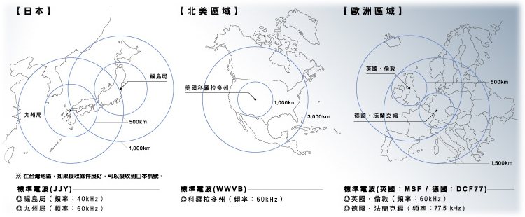 電波手錶的種類有: 單局單頻、雙局多頻、多局多頻。