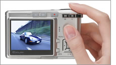 *LCD monitor ON, Flash disabled, alternating between wide-zoom and telephoto-zoom