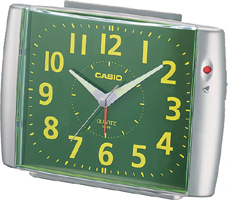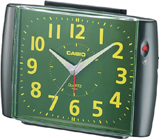 The TQ-379 features a light absorbing resin face for easy reading. An indicator on the front of the clock lets you see whether the alarm switch is on or off at a glance. |
