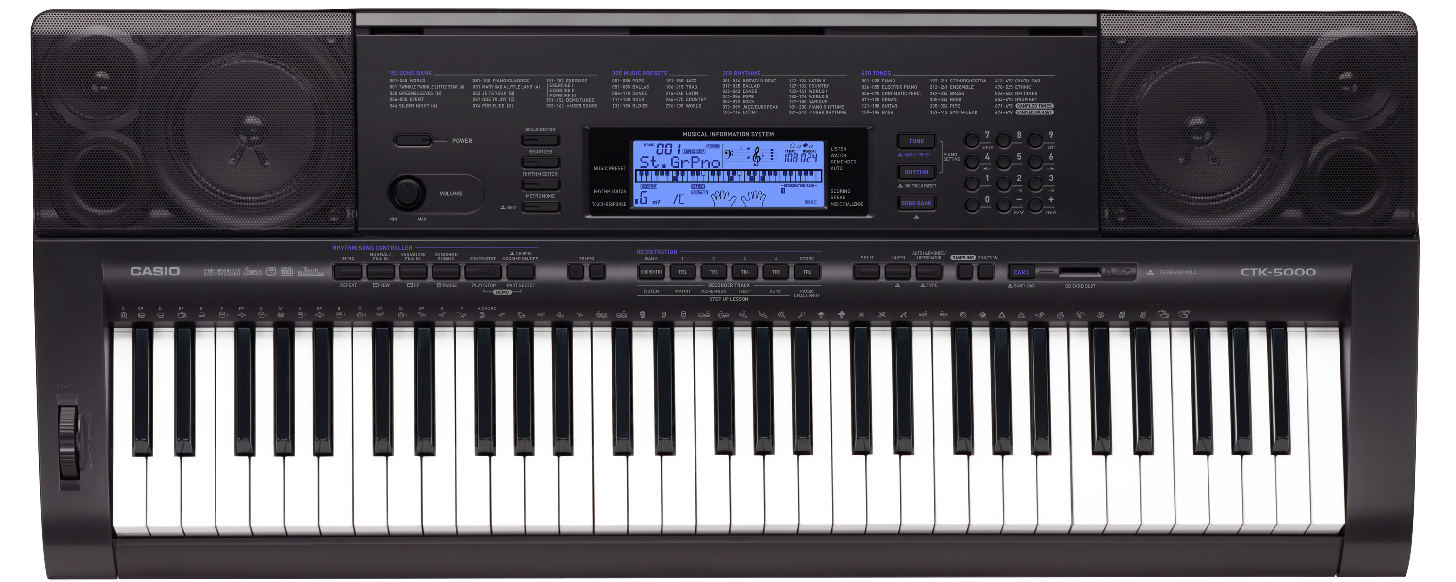- 200 rhythms including 77 ethnic rhythms and 20 patterns for piano play