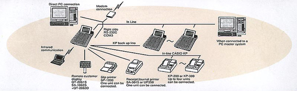 Optional equipment includes kitchen printers (up to four CASIO KP-200 or